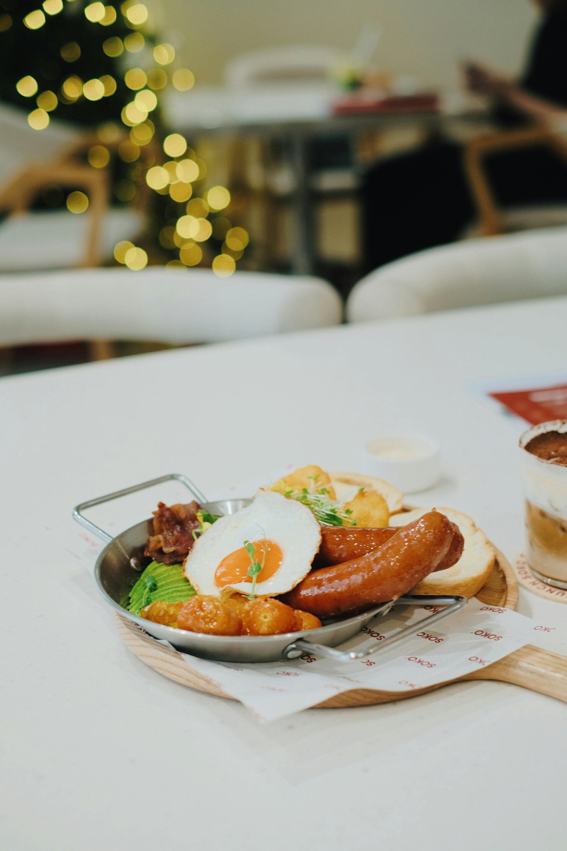 A classic favourite – crispy bacon and a perfectly cooked egg in a soft barm cake.